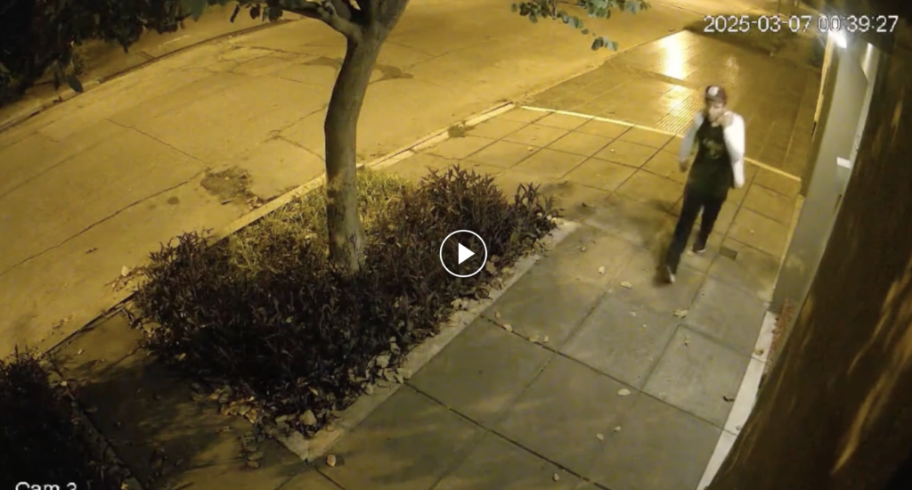 Una vecina de la cuadra aportó registros de cámaras de seguridad en los que se observa a un hombre con ropa oscura, gorra roja y una mochila azul saliendo de la casa de la víctima y huyendo en dirección este. Personal de la Policía de Investigaciones se hizo presente en el lugar pasadas las 02:20 para realizar las pericias correspondientes.